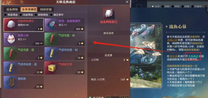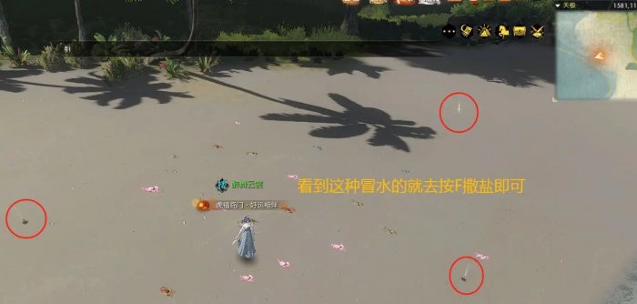 海滩上冒水的都可按F撒盐,每周抓海产60次,可获得各种海产品,打开可得小贝壳