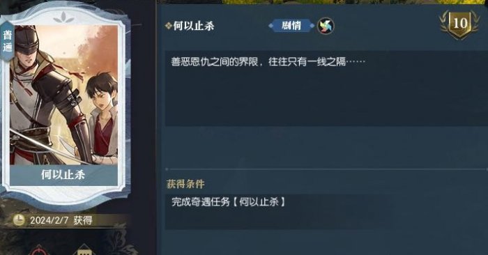 完成获得说英雄卡【何以止杀】趣味技能【善恶一念】