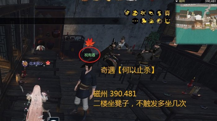 磁州390.481二楼坐凳子(不触发多坐几次),祝有酒接任务。