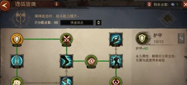 点出这套万金油加点,我们可以激活硕果累累、不败之地、大地守卫、鬼斧神工4个天赋树切换,其中不败之地的【生机】和鬼斧神工的【超凡】是多花了点数的,如果你用使魔的救星可以不点不败之地的【生机】在战歌激活大地守卫天赋,鬼斧神工的【超凡】个人觉得还是必点的,不管是打魔神还是挑战秘境鬼斧神工叠暴击和攻击的能力是非常强势的。