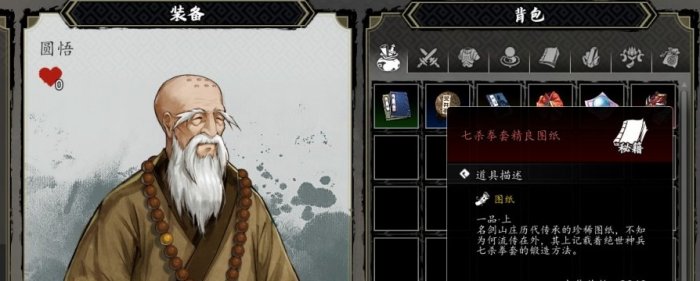 一品拳套七杀拳套图纸:少林寺找圆悟大师切磋胜利后获取。