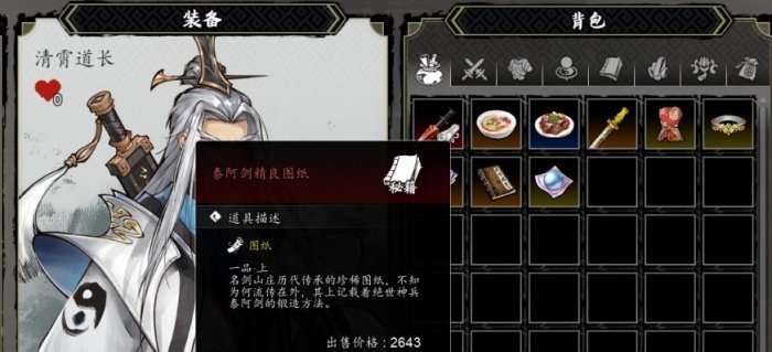一品剑泰阿剑图纸:武当派找清霄道长切磋获得,清霄道长的实力十分强劲,建议后期主角强度上来后去切磋。