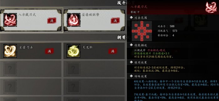 八方藏刀式:主线剧情关外围攻天龙帮击败天龙帮帮主后获得,所有人可学。