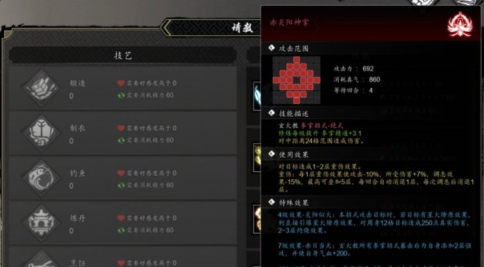 赤炎阳神掌:在主线进行到玄火教击败玄离后找到苦老请教获得,只能主角自己学。