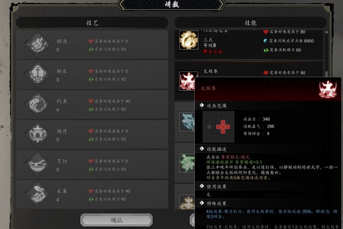 太极拳:随着主线剧情的推进会进入一个学习太极拳或者太极剑法的选择,选太极拳即可习得。如果想提前学习的话,可以在武当派找道通请教获得或者找清虚掌门切磋获取。区别是主线剧情和请教道通都是只能主角使用,而找清虚掌门切磋获得的功法可以给队友学习。