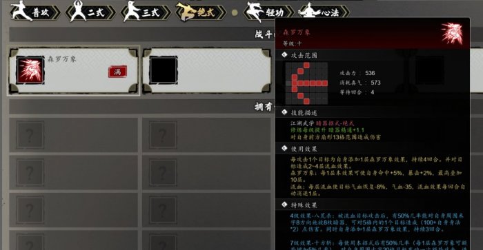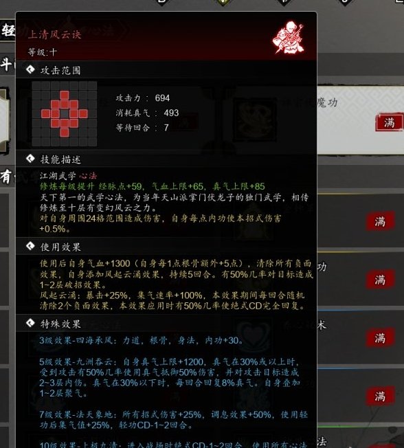 上清风云决:随着主线推进自动学得,游戏最强心法,强度断档领先包括易筋经在内的所有心法,甚至可以称作为官方内挂,难怪武林人人都要争抢它,主角独有。