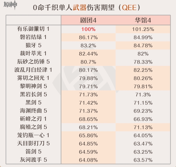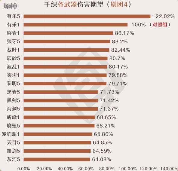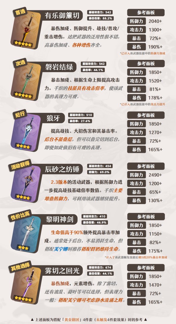 ①该武器能为千织提供高额的暴伤加成、增伤和防御力提升,最大程度地提高千织的输出。
