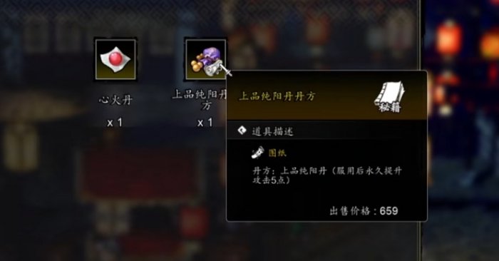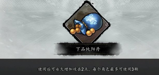 中品纯阳丹配方:与武当派道玄切磋获得,由于是新版本更新后加入,需要重开新存档才有,老存档无法获得。