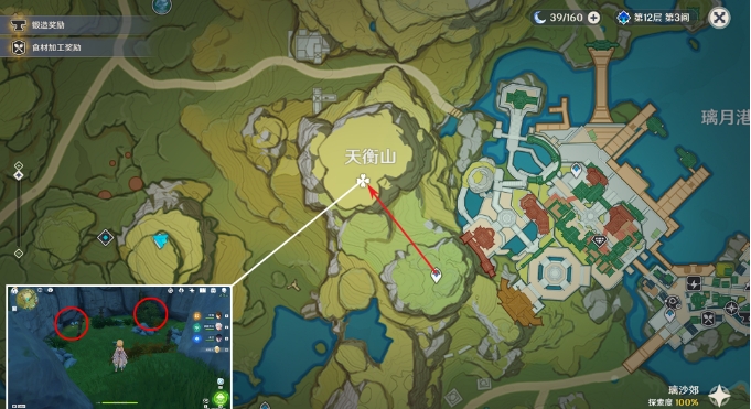 2.位于璃月,建议在队伍中加入七七/烟绯,天赋可以标记特产位置
