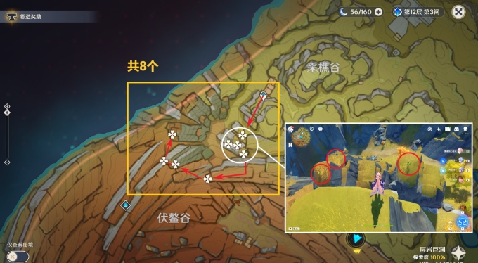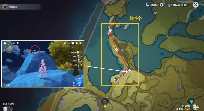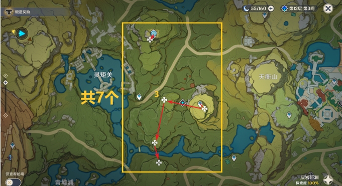 2.位于璃月,建议在队伍中加入七七/烟绯,天赋可以标记特产位置