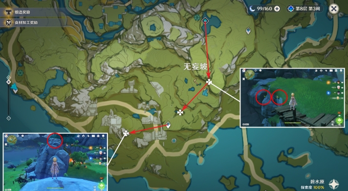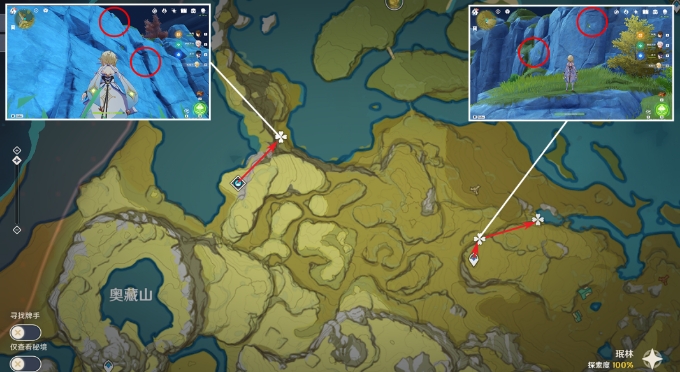 2.位于璃月,建议在队伍中加入七七/烟绯,天赋可以标记特产位置