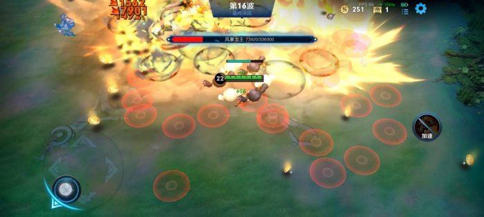 沈梦溪的攻击距离远,范围大,所以只要围着地图边缘转圈就可以了,中期成型以后中间的怪都能被清掉,一个普攻满屏都是炸弹,只要保证我们自己的位置安全就可以了,完全不需要担心打不到人,跟怪保持距离什么的,专心转圈躲避一些远程攻击就可以了。