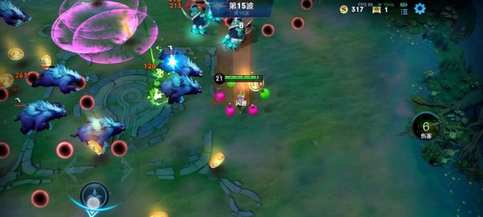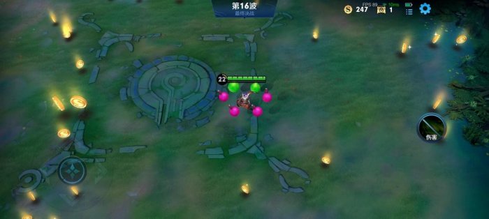局内操作也比较简单,围着地图转圈就行了,怪在屁股后面聚的多了,或者是血量低了就放技能。