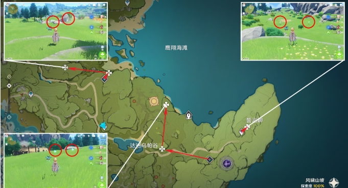 2.位于蒙德,建议在队伍中加入可莉,天赋可以标记特产位置