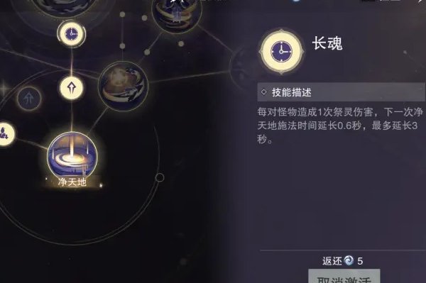 实战中祭灵伤害对净天地的影响可看天地祭灵BUFF,在放净天地前,天地祭灵需要达到5层,也就是至少造成5次祭灵伤害。