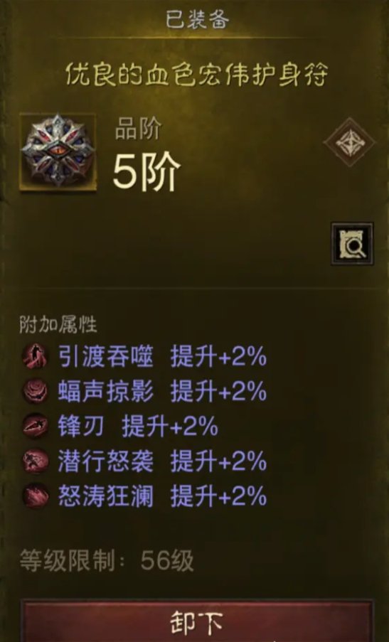 如果你专精一个职业玩,那么可以稍微花点白金币凑个护符,如果喜欢经常转职其实没必要花那么多白金币搞护符,特别是那些+6%以上的,有个2%意思一下就好了。暗黑不朽白金币能购买的东西还是有限,主要是提升共鸣,记住平民不要去搞使魔。