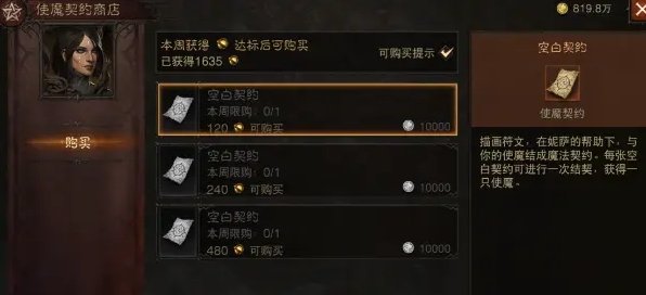 每周我们可以打怪出空白契约,每周保底可以买3张空白契约去卖,虽然现在使魔的价格很低,但如果出了灵猫这种热门使魔还是可以卖点价钱的,对于平民来说有总比没有好。