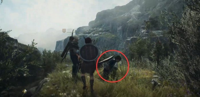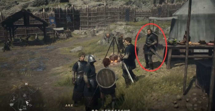 到营地北面,游戏一开始刚从狮鹫身上掉下来时路过的地方,找到马科斯,把笔记交给他。