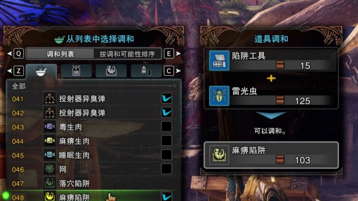 例如麻痹陷阱,雷光虫在植生所培养,商店购买陷阱工具就可以手搓出来。