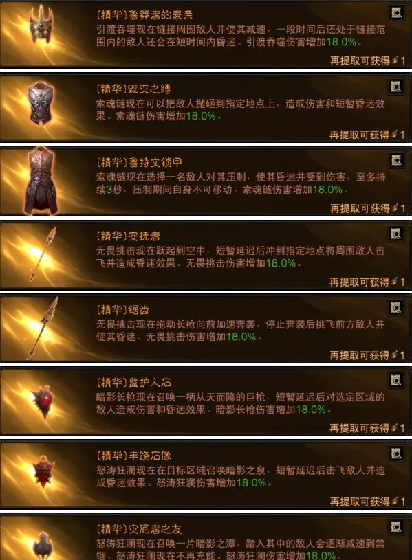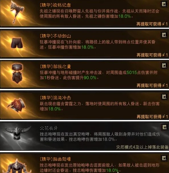野蛮人目前版本有6个精华可以触发石像,主要以昏迷为主