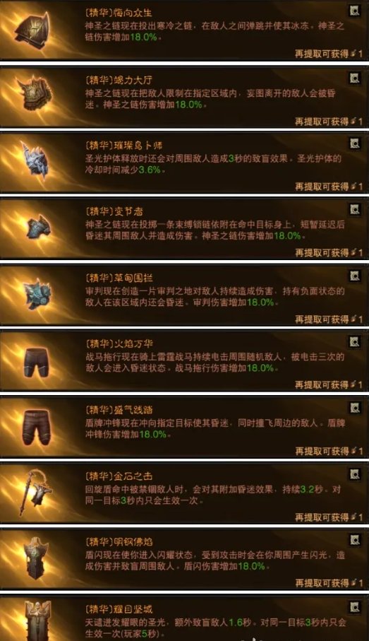 圣教军目前版本有10个精华可以触发石像,主要以昏迷、致盲为主