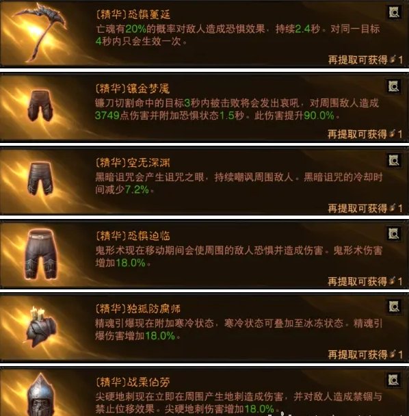 死灵法师目前版本有6个精华可以触发石像,主要以恐惧为主