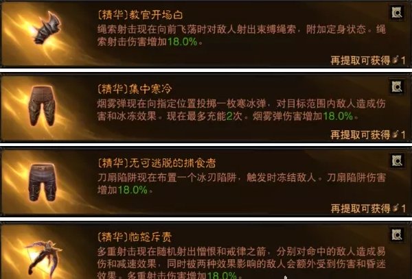 猎魔人目前版本有4个精华可以触发石像,主要以定身 、冰冻为主