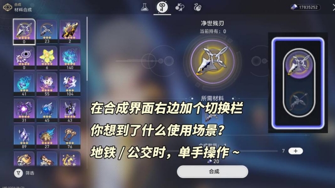 右侧新增同系列材料不同等级快速切换,感觉主要是利好移动端玩家,单手也可完成操作。