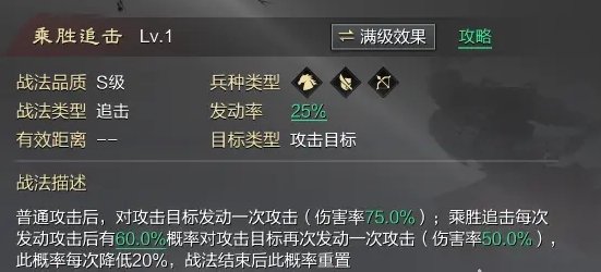 2023强力推出的唯一S追击战法,效果不必多说,大菜刀的崛起固然离不开张辽的回调,乘胜追击的出现又是将传统菜刀和瓒刀推向顶峰。