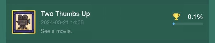 注意点:只需要购买票进入电影院就可达成成就,就算不看电影,买完票直接走出电影院也是可以的