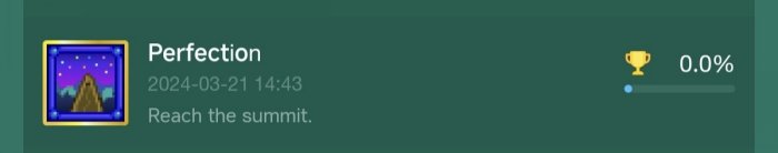 注意点:对于1.6版本之前就100%完成度到达过山顶的玩家,不需要继续完成新版本更新后的100%进度,只需要进入山顶就可达成该成就