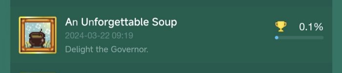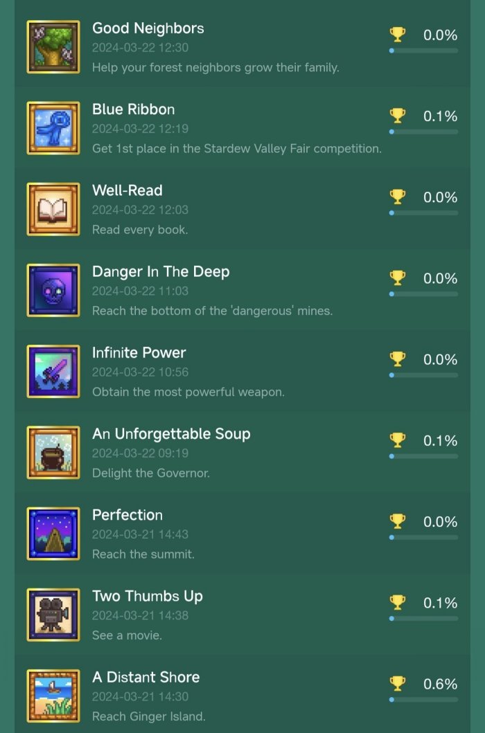 本次星露谷物语1.6版本总共新增了九个成就,但其实真正新的就那么两个