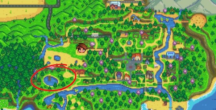 要前往参加鳟鱼节,那么你需要从南出发离开你的农场,然后继续向南出发。主要的活动举办帐篷会在湖的北岸,但你可以在湖的周围任何地方开始钓鱼,并尝试去捕捉虹鳟鱼!