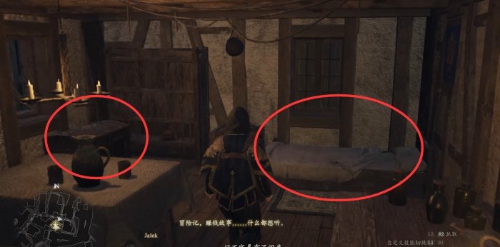 有了自己的家就方便多了,以后需要回血或推进时间时,就来这里睡觉。死亡后,选择“从最后休息过的旅店重新开始”时,也会从自己家里复活。(所以这相当于不用花钱的旅店)
