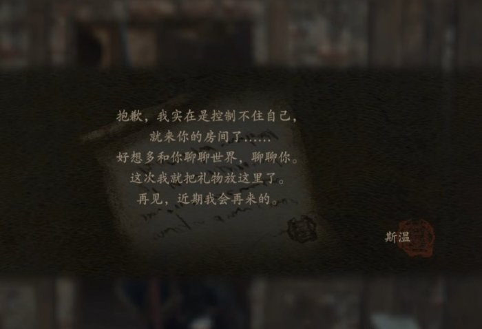 过些天回家时,发现斯温在你家门口留了礼物和信。