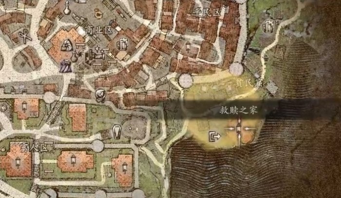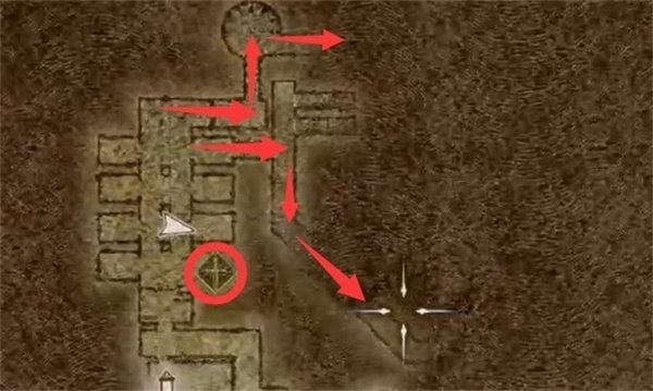 没办法,我们只好自己先逃出去,从下图的两条路线都可以出去到贫民窟。其中一条路,牢房里的墙可以打破,就能出去了。