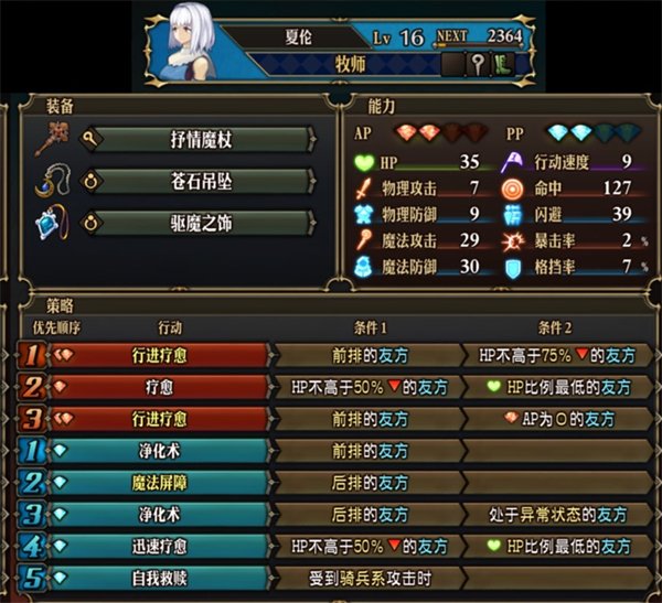 2、在面对不能直取后排的敌方时,如果战斗结果是受伤或者减员,那说明应该分配更多的PP给拨挡,此时应禁用快速袭击和绯石换苍石。