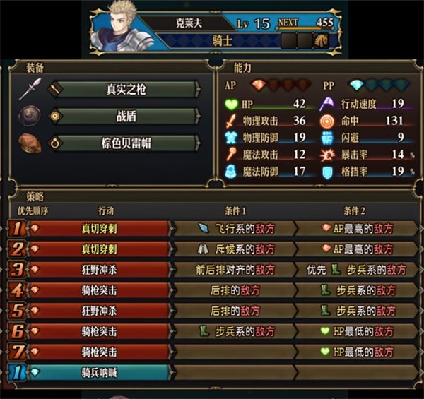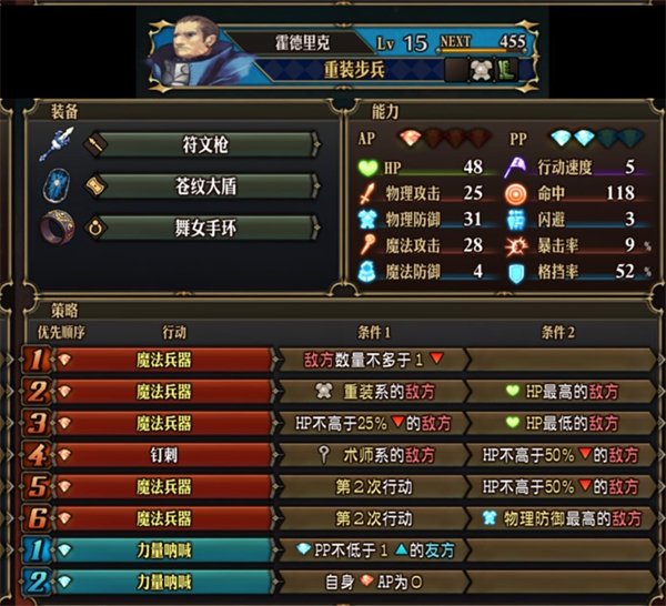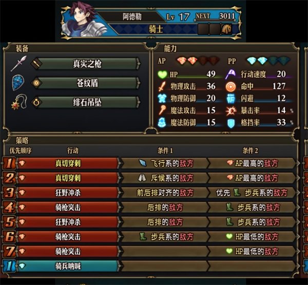 2、符文剑和符文枪的魔法输出应对重装前排,真实之枪的必中攻击应对飞行和闪避前排,狂野冲杀无视和昏厥任何前排。