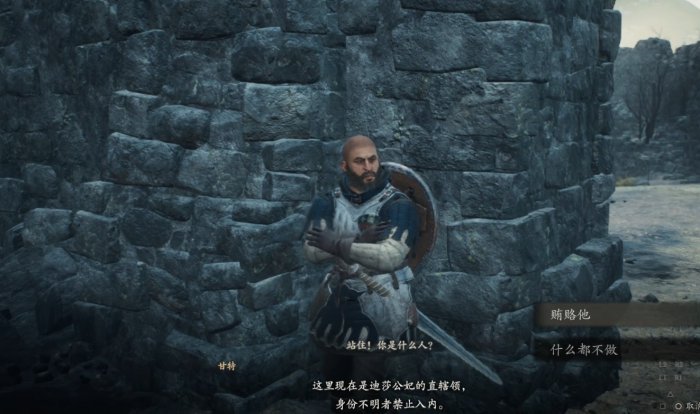 然后到村子外坐篝火再回梅维村,发现村子被封锁了,贿赂守卫进去。