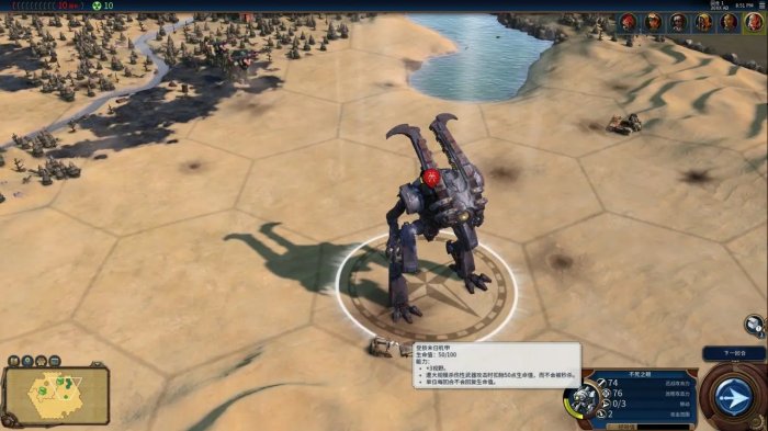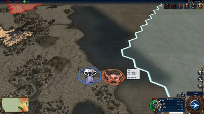 该模式不能建城,因此是严格意义上的战棋,只有走棋,没有科研和发展。主要操作就是探图捡资源(各种单位)和战斗,每个派系还有自己的独特技能。