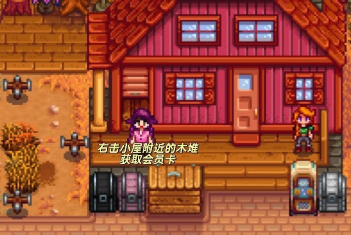 右击小屋旁边的木堆获取会员卡,会员卡存储在钱包中。