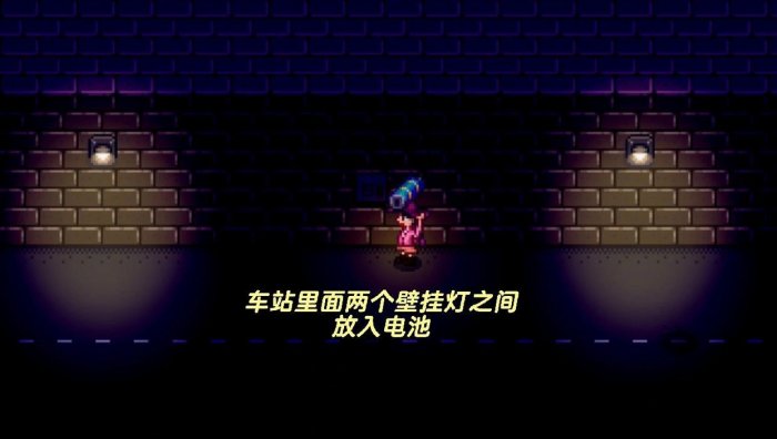 农场附近的公交车站一直向左走,隧道两个壁灯中间有有一个电箱,放入电池组(可以通过避雷针/太阳能板获取,也可以在猪车购买)激活任务。