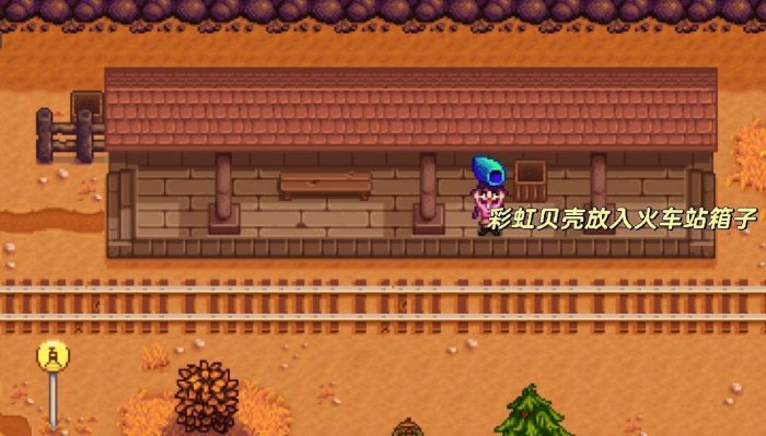 带一个彩虹贝壳(夏季的海滩可以捡到,也可以在猪车购买)放入火车站站台内的木箱中。
