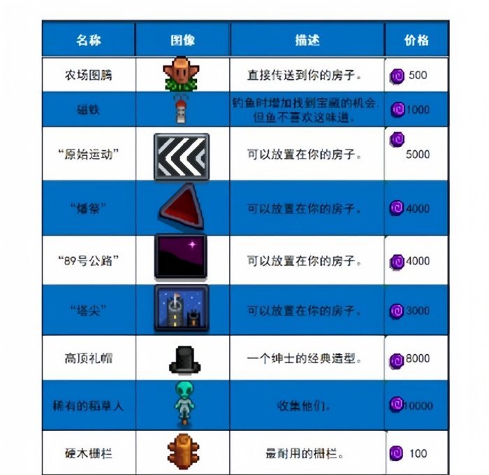 赌场商店售卖:四种挂画、珍奇乌鸦3、大礼帽、硬木栅栏、磁铁、农场传送图腾。