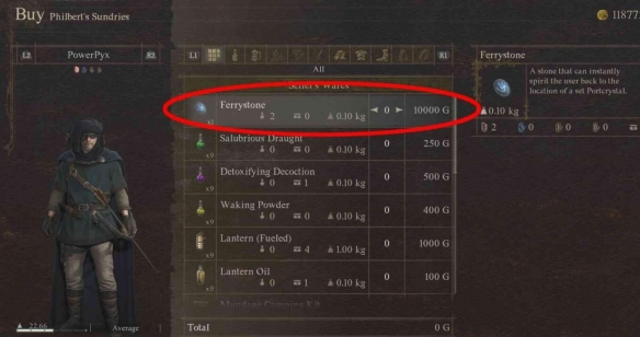 2、如果想要购买的话,需要有足够的金币,具体在维纶沃斯的菲尔伯特杂货店可以花费10000G购买。