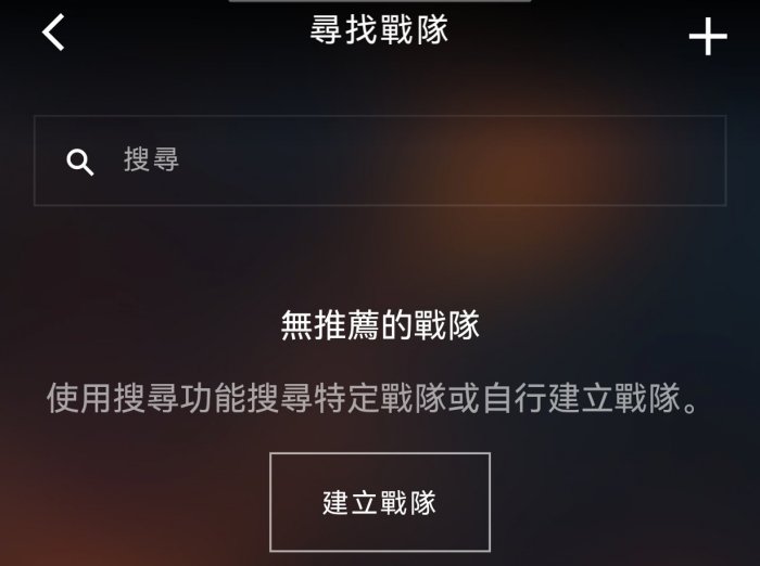 再点击左上角放大镜即可搜索或创建战队(搜索战队时需要搜战队全名,只搜标签无效)