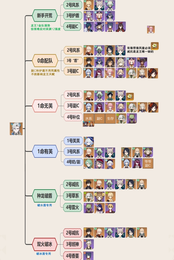 无芙公式:龙王+风系+副C+补位(副C、增益、生存)