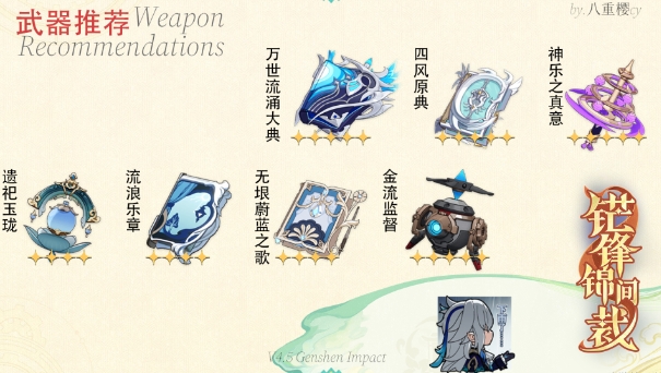 这个队伍缺加伤,无万叶情况,我们一般是选择:生水爆