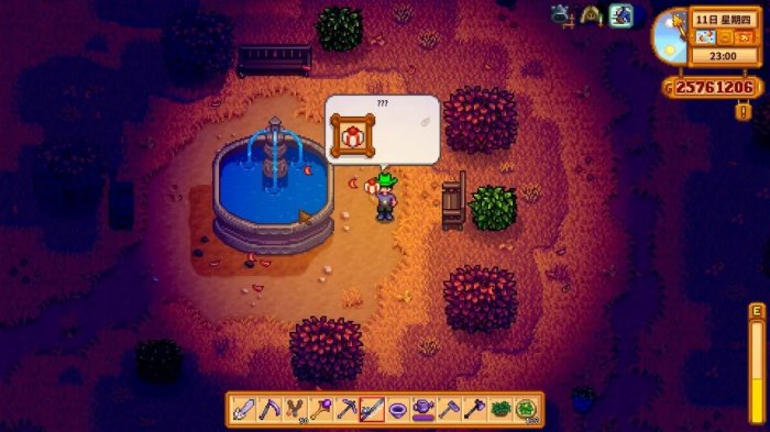 在社区中心左前方(游乐园前方)的小喷泉处钓鱼,有概率钓上来,一个不能翻的垃圾桶