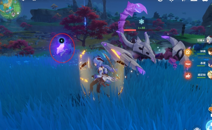 需要慢慢和它消耗,等它亮出能量块的时候,激活能量块(带一个可以普攻释放元素的角色),然后再打一下它,就可以让他进入瘫痪状态了